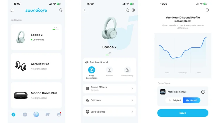 I made good use of several of the Space 2’s other features, too. Wear detection is a must-have feature for me, and the HearID Sound audio personalisation tool proved to be my favourite sound profile after I’d undergone the hearing test process.