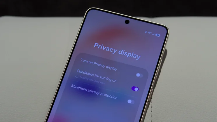 Not only does it black out the screen when it’s viewed at oblique angle – it seemed to kick in at about 15 degrees when I tried it out – but because the technology is implemented at the pixel level, it can also be set up to work with specific parts of the display, such as pop-up notifications.