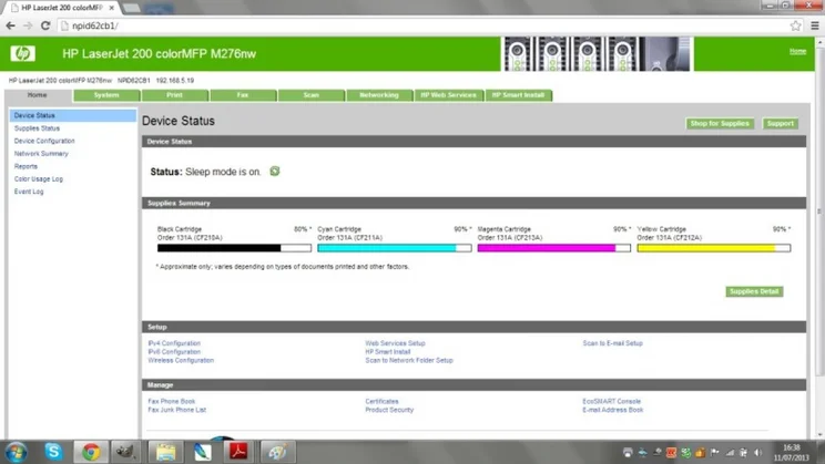 HP’s Laserjet Pro M276nw is a laser multifunction printer (MFP) that lets you print, scan, copy and fax over a wireless or wired network. Instead of control buttons the M276nw has a large, responsive touchscreen through which you access functions.