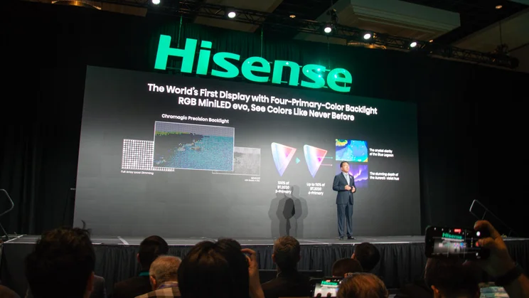 Compared to Quantum Dot OLED technology, Li says that RGB Mini LED Evo will produce 60% less blue light – or 75% less than traditional Mini LED displays. The tech is also 30% more energy efficient than QD-OLED, it was claimed. All of this will result in what Li described as the new “pinnacle of display technology” and the equivalent of professional reference monitor levels of performance and accuracy in people’s homes. Lofty claims, indeed.